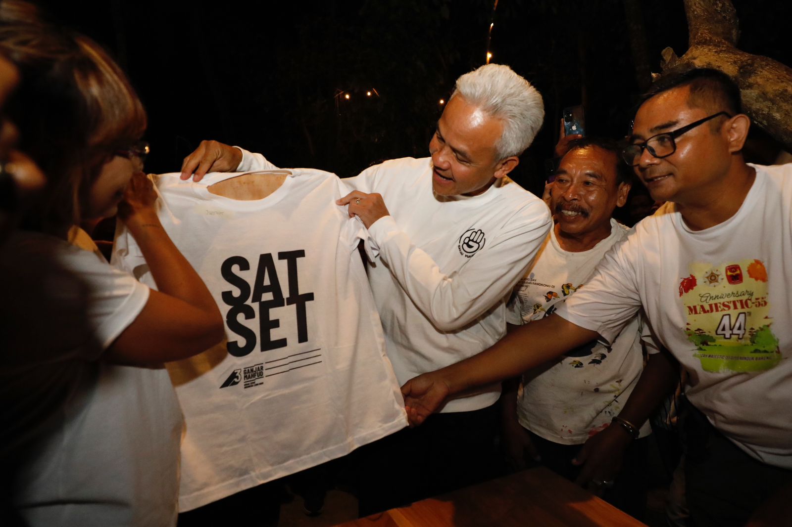 Lewat Gerakan Kaos Rakyat, mereka mengorganisir dan menggalang dukungan ke Ganjar-Mahfud lewat gotong royong partisipasi rakyat dengan sablon kaos gratis.