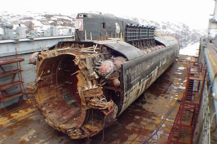 Bangkai kapal selam Kursk yang diangkat dari dasar laut Barents pada tahun 2000 /The National Interest