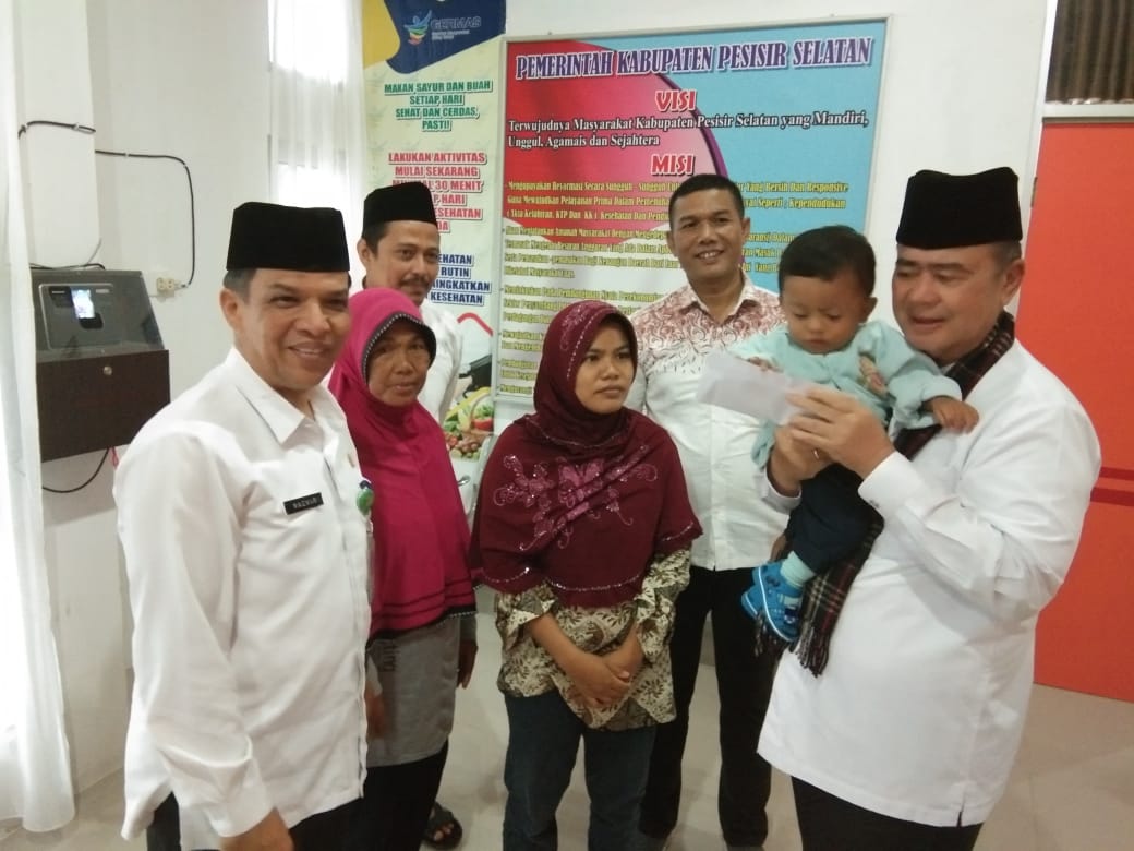 PAINAN, harianindonesia.id – Wakil Gubernur Sumatera Barat Nasrul Abit menyerahkan santunan kepada keluarga almarhum Dendi Irawan, petugas KPPS yang wafat setelah melakukan pengamanan di TPS Langkitan Kecamatan Lengayang Kabupaten Pesisir Selatan, Sumatera Barat, Rabu (29/5/2019).