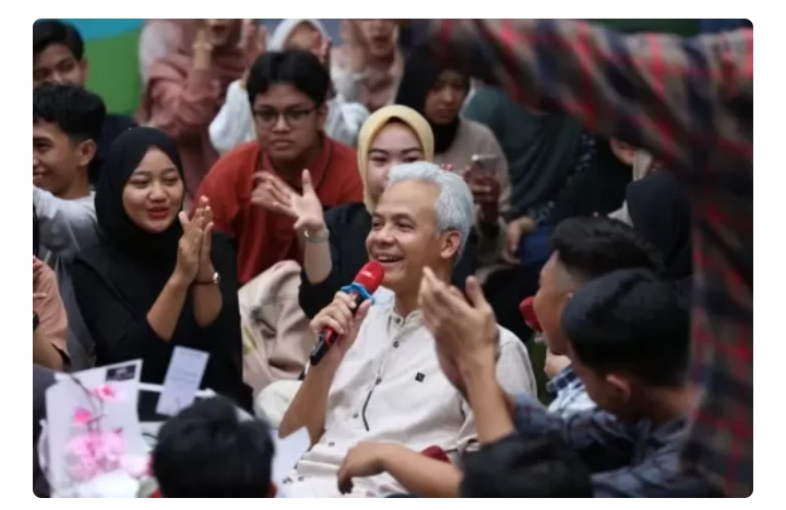 Bakal Calon Presiden Republik Indonesia GANJAR Pranowo terlihat gembira saat berbicara dengan kalangan Gen Z di Kota Palembang, Minggu (5/11/2023). (Foto : kredit Tribun Palembang)