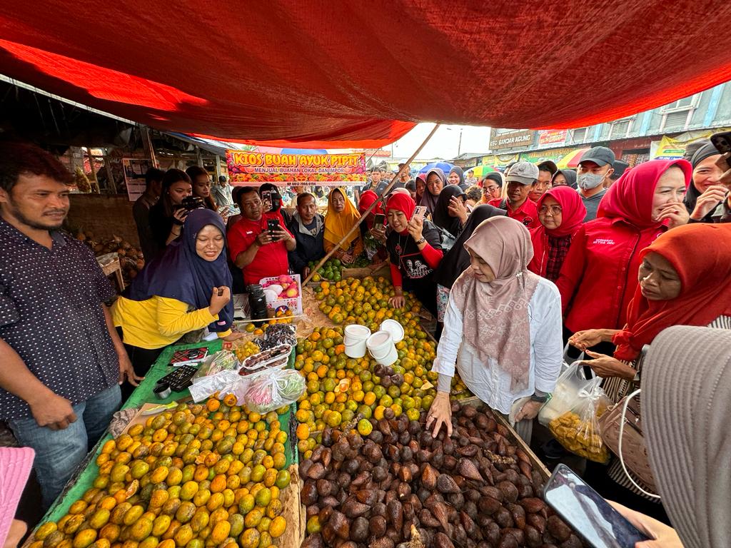 Atikoh selama di Pasar Modern Tulang Bawang mendengar aspirasi tentang pentingnya pemerintah menjaga kestabilan harga.