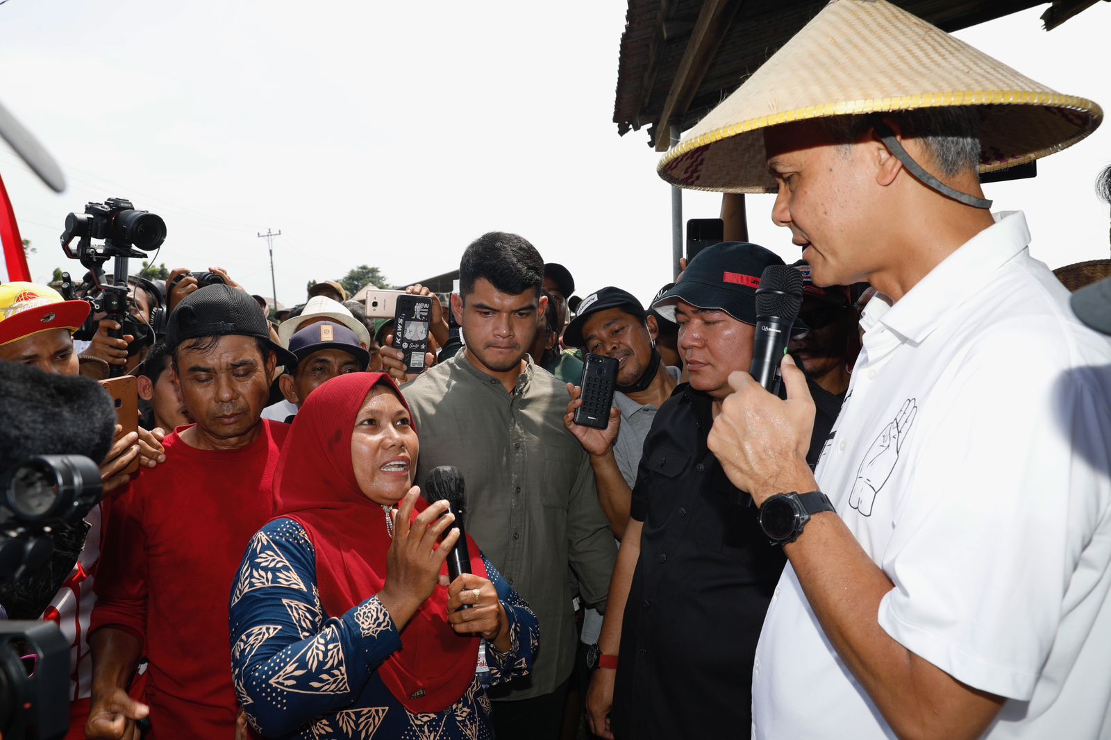 Calon Presiden RI Nomor Urut 3 Ganjar Pranowo menjanjikan akan menghapus kredit macet petani. Hal ini disampaikannya saat bertemu ribuan petani di Desa Wilalung, Kabupaten Demak, Jawa Tengah, Selasa (2/1/2024). (Foto : TPNGM)