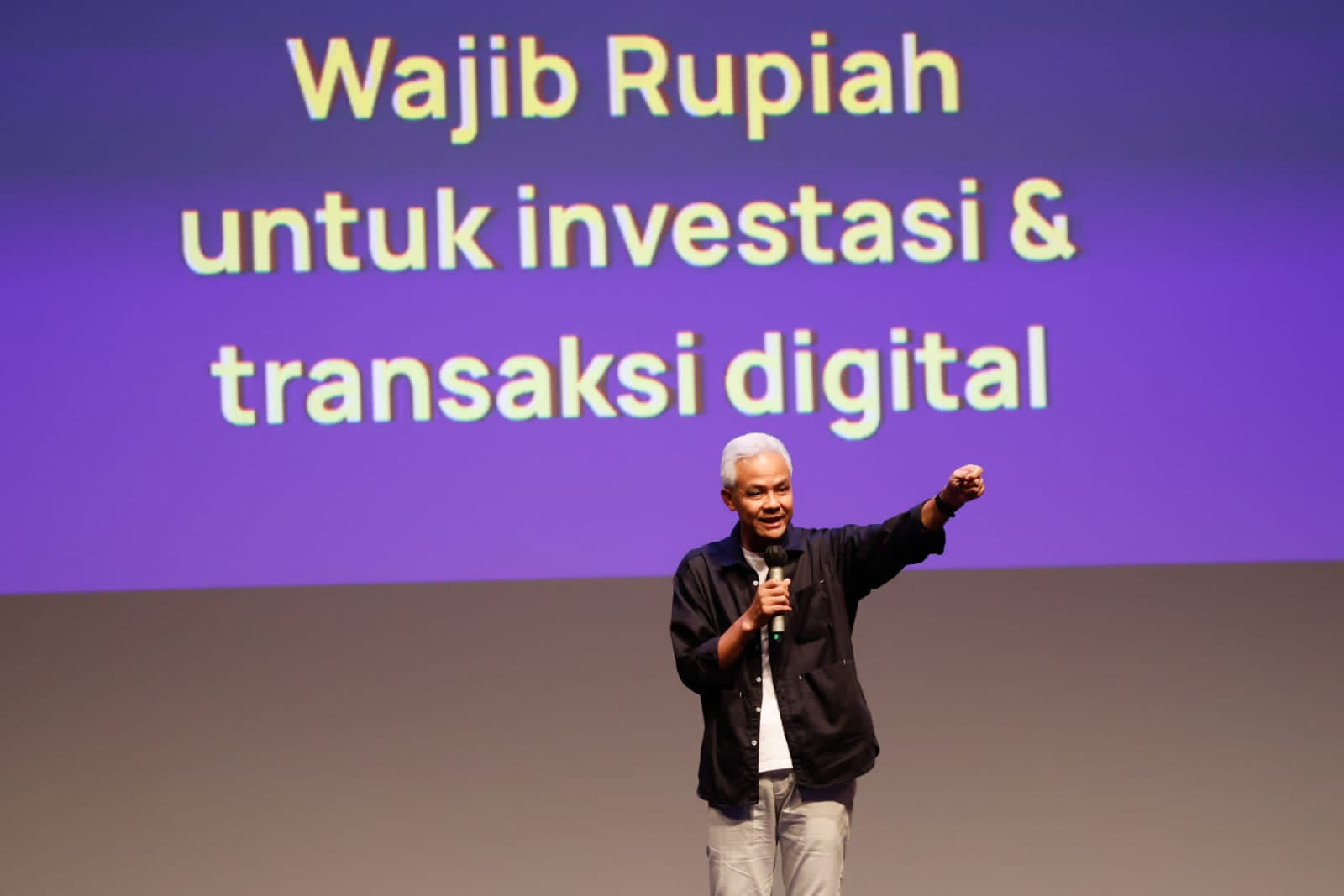 Calon Presiden Ganjar Pranowo berbicara di depan ribuan anak muda pada acara Teman Cerita yang berlangsung di Djakarta Theater, Jakarta Pusat, Kamis (21/12/2023). (Foto : kredit media center TPNGM)