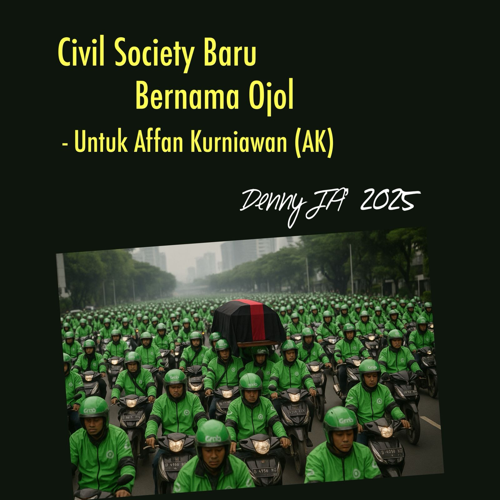 Di jalan raya, ribuan ojol yang mengiringinya telah menorehkan bab baru dalam sejarah civil society Indonesia.