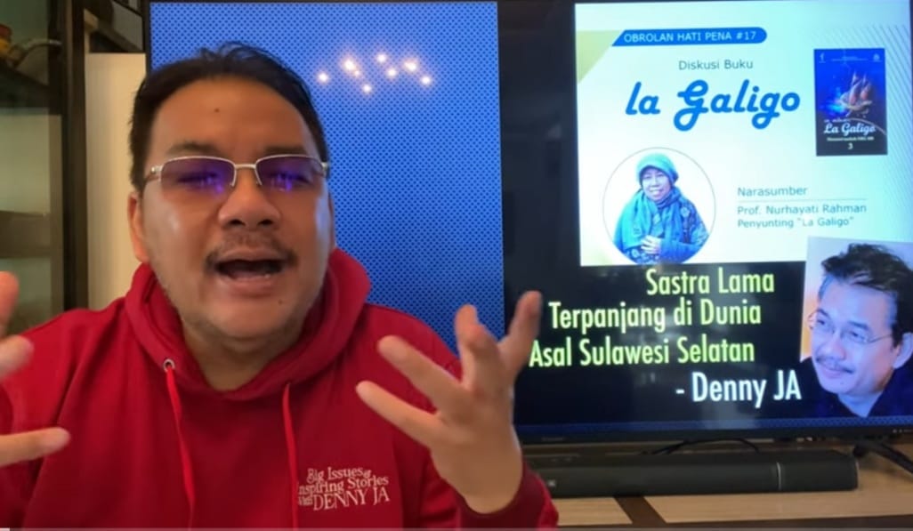 Hal itu dijelaskan Denny JA, Ketua Umum Perkumpulan Penulis Indonesia Satupena sewaktu menanggapi Prof. Dr. Nurhayati Rahman, narasumber dalam diskusi membahas La Galigo di website seminar Obrolan Hati Pena #17 di Jakarta, Minggu 12 Desember 2021.