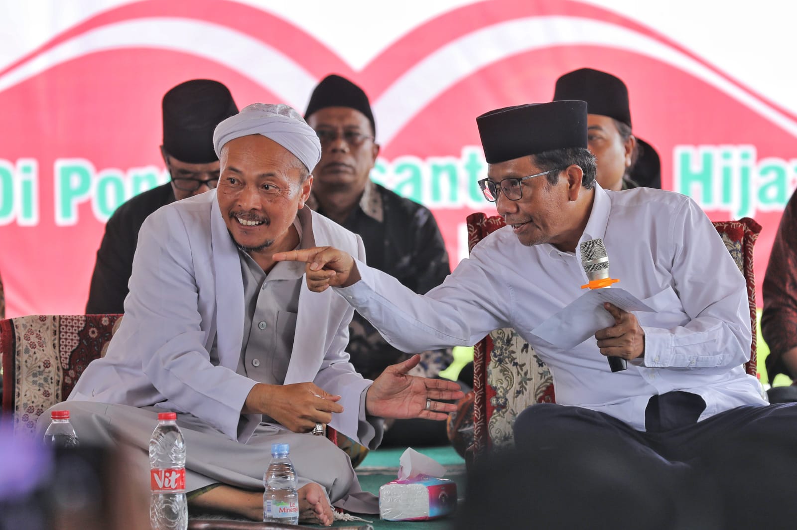 Pada hari yang sama Mahfud juga menghadiri Halaqah Kebangsaan di Pondok Pesantren (Ponpes) Al Hijaz, Jalan Syeikh Syarif Dusun Kebon Kacang, Kecamatan Klari, Karawang, Jawa Barat (Jabar), Sabtu (27/1/2024).
