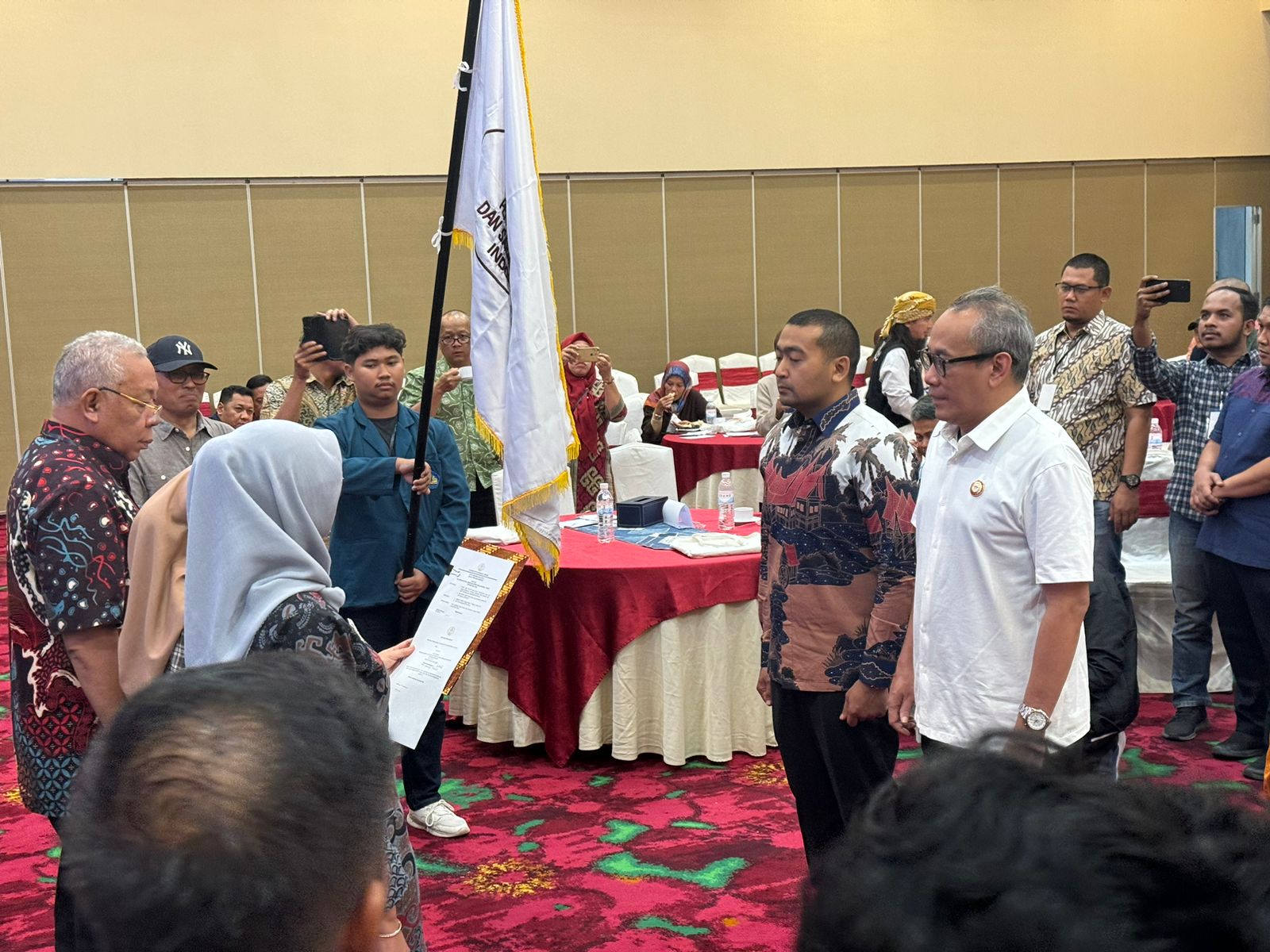 Momen pengukuhan Audy Joinaldy sebagai Ketua PB ISPI setelah mendapatkan amanah dari peserta Kongres XIII PB ISPI di Hotel Emersia Bandar Lampung, 19-21 Januari 2024. (Foto : Humas Banhub Sumbar)
