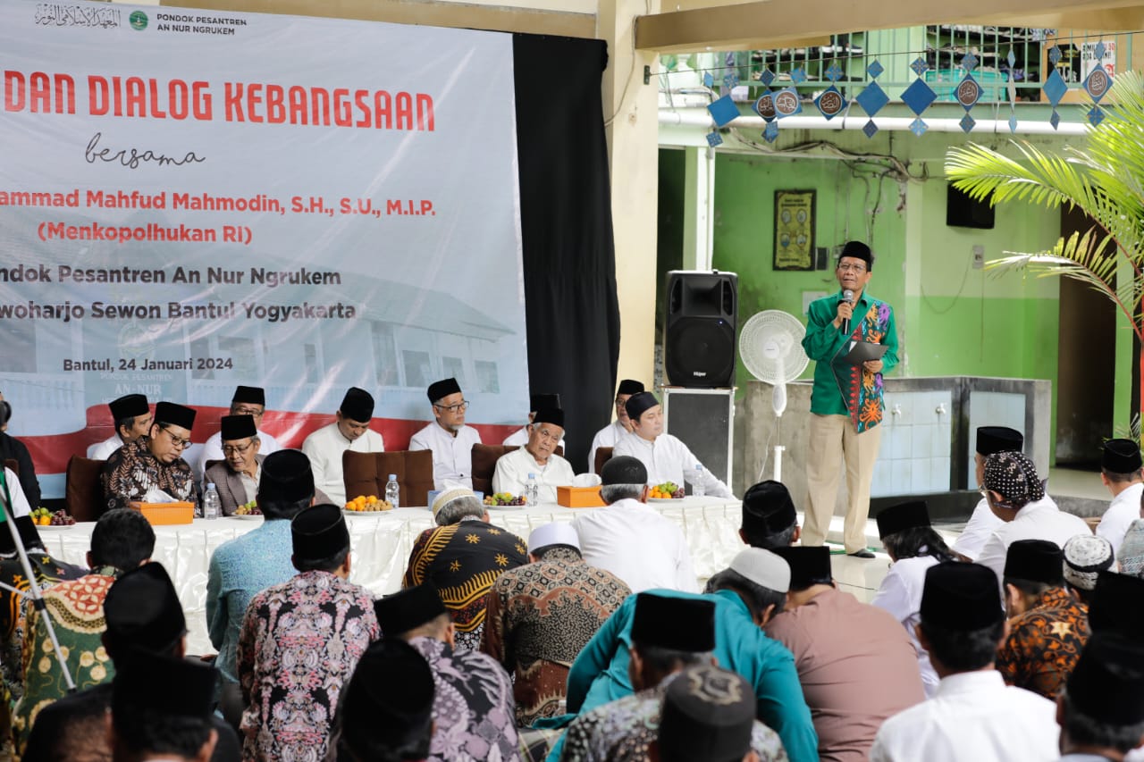Dalam Halaqah dan Dialog Kebangsaan di Ponpes An Nur Ngrukem, Mahfud menyampaikan 3 kiat menjaga Negara Kesatuan Republik Indonesia (NKRI).