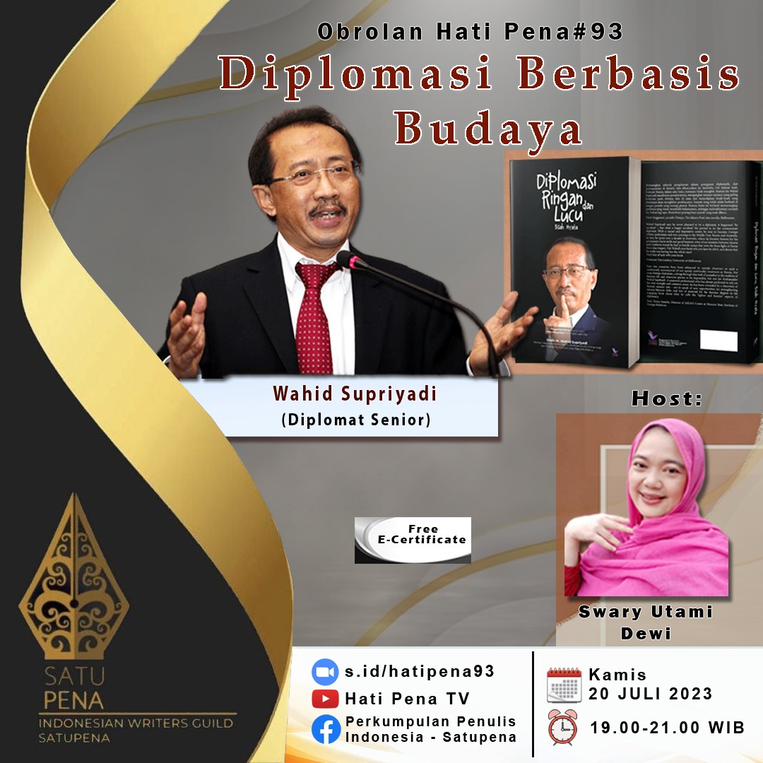 Obrolan Hati Pena #93 tentang Diplomasi Berbasis Budaya itu akan berlangsung di Jakarta pada Kamis, 20 Juli 2023, pukul 19.00-21.00 WIB.