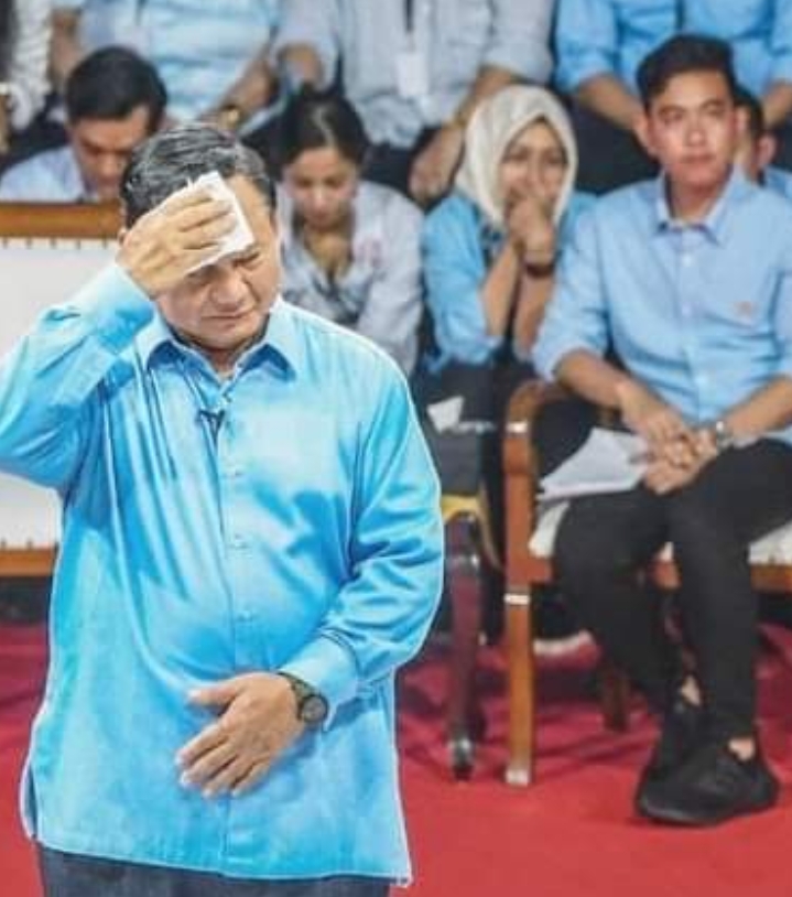 Cawapres Paslon 02, Gibran Rakabuming Raka terlihat berada dibelakang Capres Prabowo Subianto pada saat Debat Capres lalu. Pencalonan Gibran digugat DKPP dengan pemberian sanksi keras kepada KPU. (FOTO : Dok)