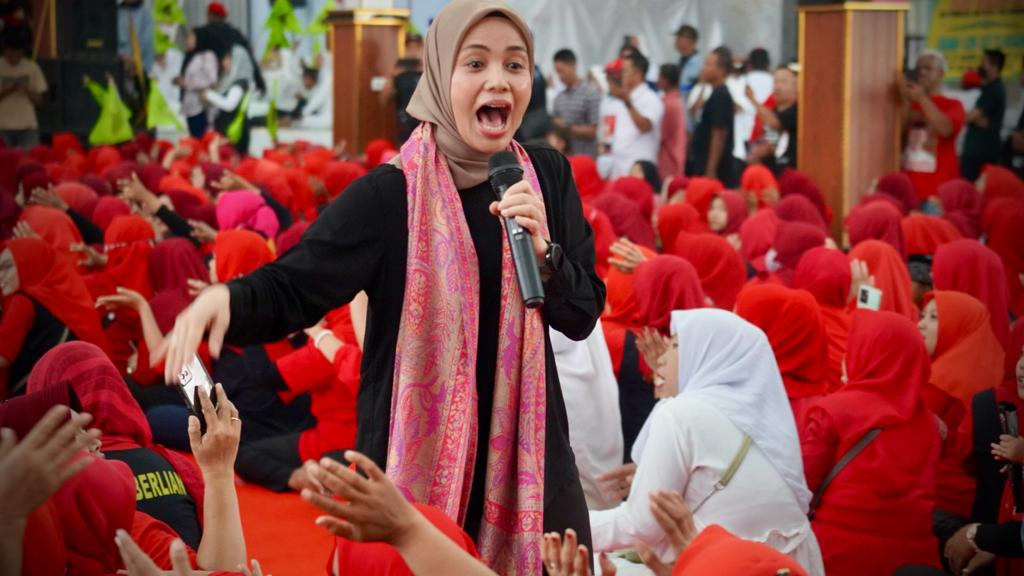 Dalam kunjungannya ke Pondok Pesantren (Ponpes) Albadru Alaina, Siti Atikoh disambut oleh ribuan jemaah wanita Ponpes Albadru Alaina.