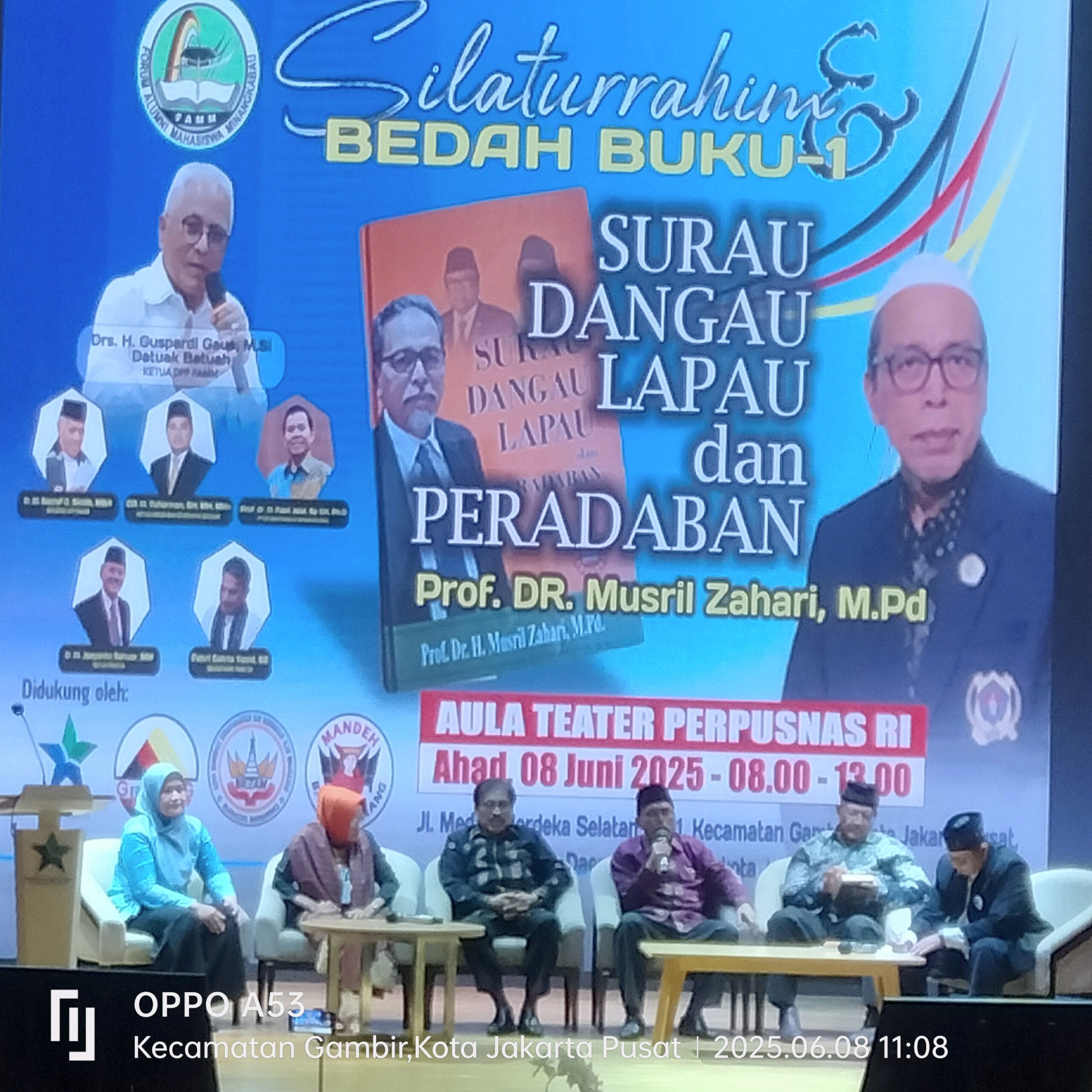 Suasana bedah Buku Surau, Dangau, Lapau dan Peradaban karya Prof Musril Zahari MPd di Aula Theater Pusat Perpustakaan Nasional Jakarta, Sabtu (8/6/2025) (foto : Awe/HI)