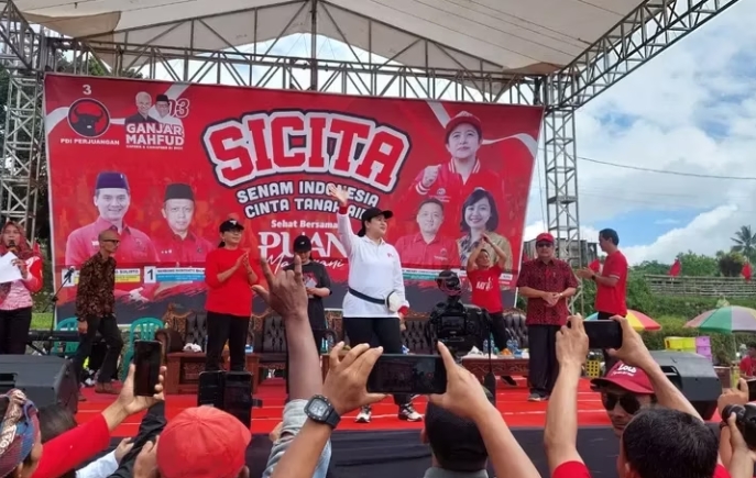 Pada Jumat (2/2/2024) Puan Maharani tiba di lapangan Desa Rempoah, Kecamatan Baturraden, Kabupaten Banyumas. Ia ikut serta dalam senam Sicita yang diadakan oleh DPC PDI Perjuangan Banyumas, bersama ribuan perempuan.