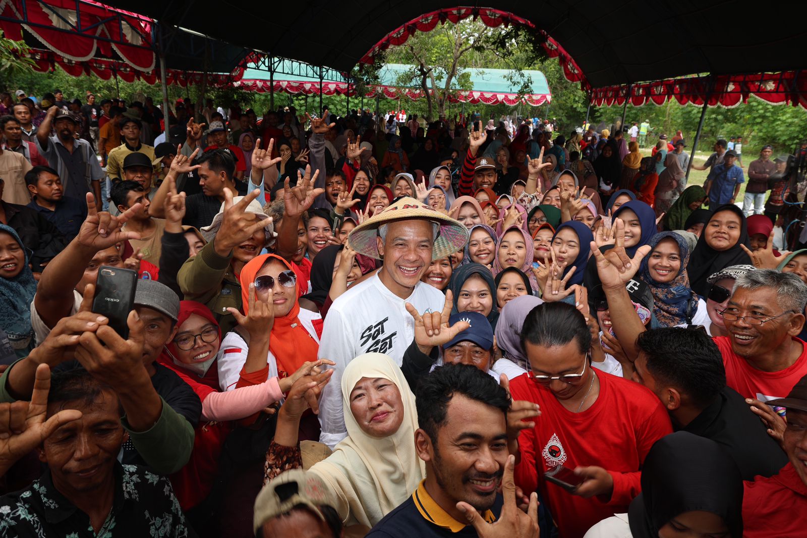 Calon Presiden RI Ganjar Pranowo bertemu nelayan Rembang sekaligus meresmikan Program Penghapusan Kredit Macet Nelayan, Kamis (4/1). Di Rembang, saat bertemu Ganjar, petani memuji ketulusan Ganjar menangani masalah yang dihadapi petani. (Foto : TPNGM)