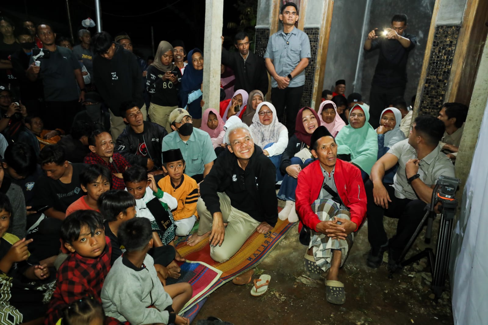Momen saat Capres Ganjar Pranowo tidur di rumah rakyat. Sebelum tidur di kamar sangat sederhana, Ganjar menyempatkan nonton bareng warga sambil mendengarkan keluh kesah mereka. (Foto : TPNGM)