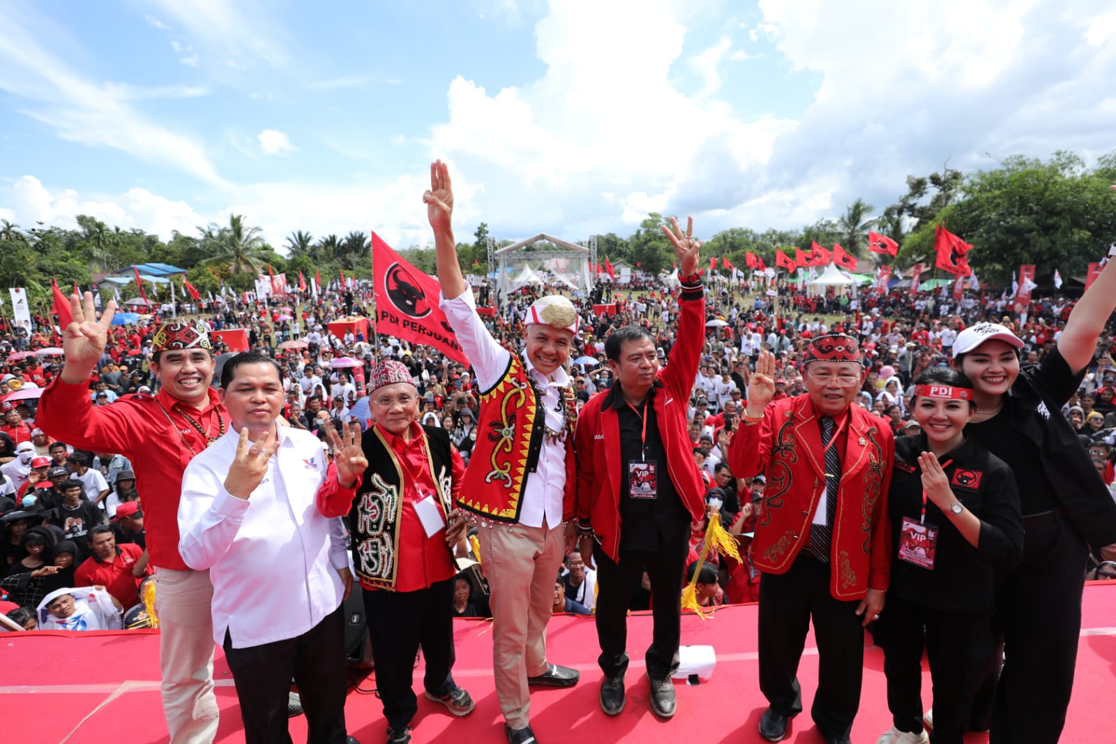 Momen Capres Ganjar Pranowo memberikan apresiasi atas keputusan Cawapres Mahfud MD yang mengundurkan diri sebagai Menkopolhukam RI. Ganjar menyampaikan dukungan kepada Mahfud saat kampanye di Pontianak, Kalbar, Rabu (31/1/2024). (Foto : TPNGM)