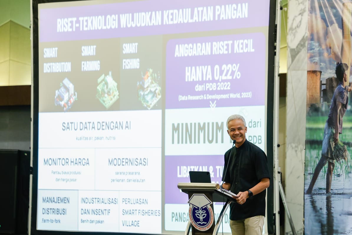 Ganjar juga mengajak periset yang tergabung dalam Himpunan Alumni (HA) Institut Pertanian Bogor (IPB) mewujudkan kedaulatan pangan nasional melalui Smart Distrubution, Smart Farming, dan Smart Fishing.