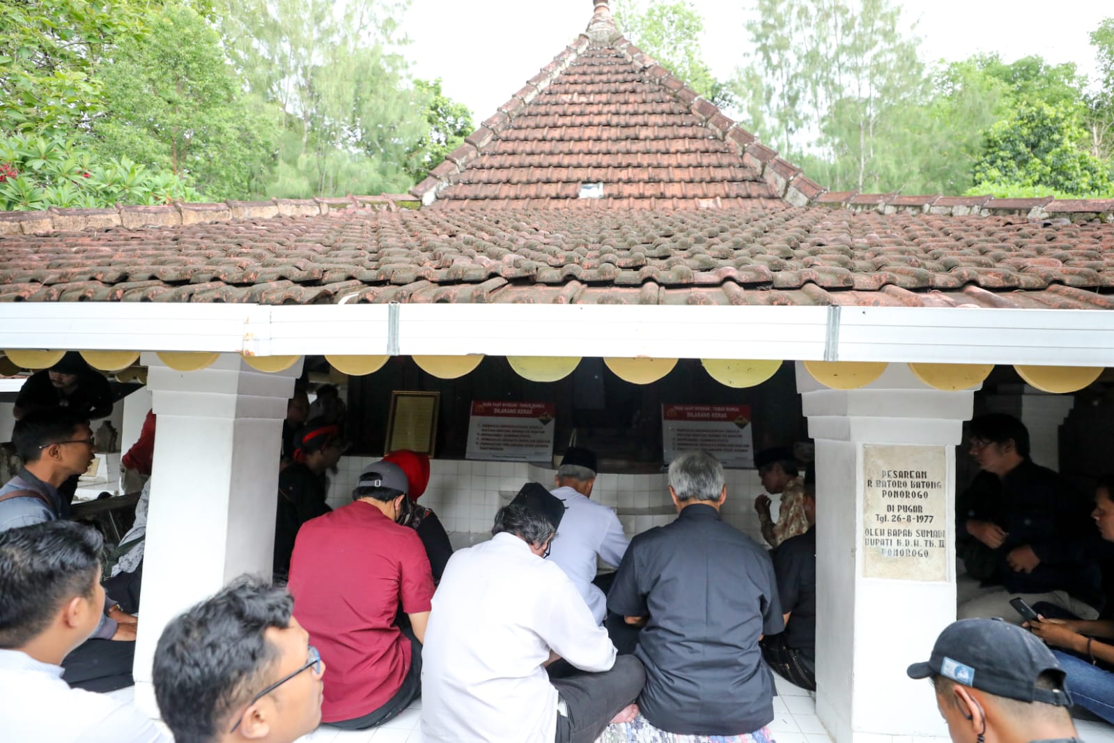 Momen Capres Ganjar Pranowo Ziarah ke makam Bathara Katong, pendiri Kabupaten Ponorogo dan Kiai Ageng Muhammad Basari yang banyak melahirkan pemimpin bangsa, Jumat (16/1/2024). (Foto : TPNGM)