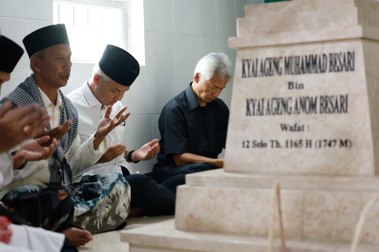 Dari sana, Ganjar melanjutkan perjalanannya ke makam Kiai Muhammad Ageng yang berada di kompleks Pesantren Tegalsari, Desa Tegalsari, Kecamatan Jetis.
