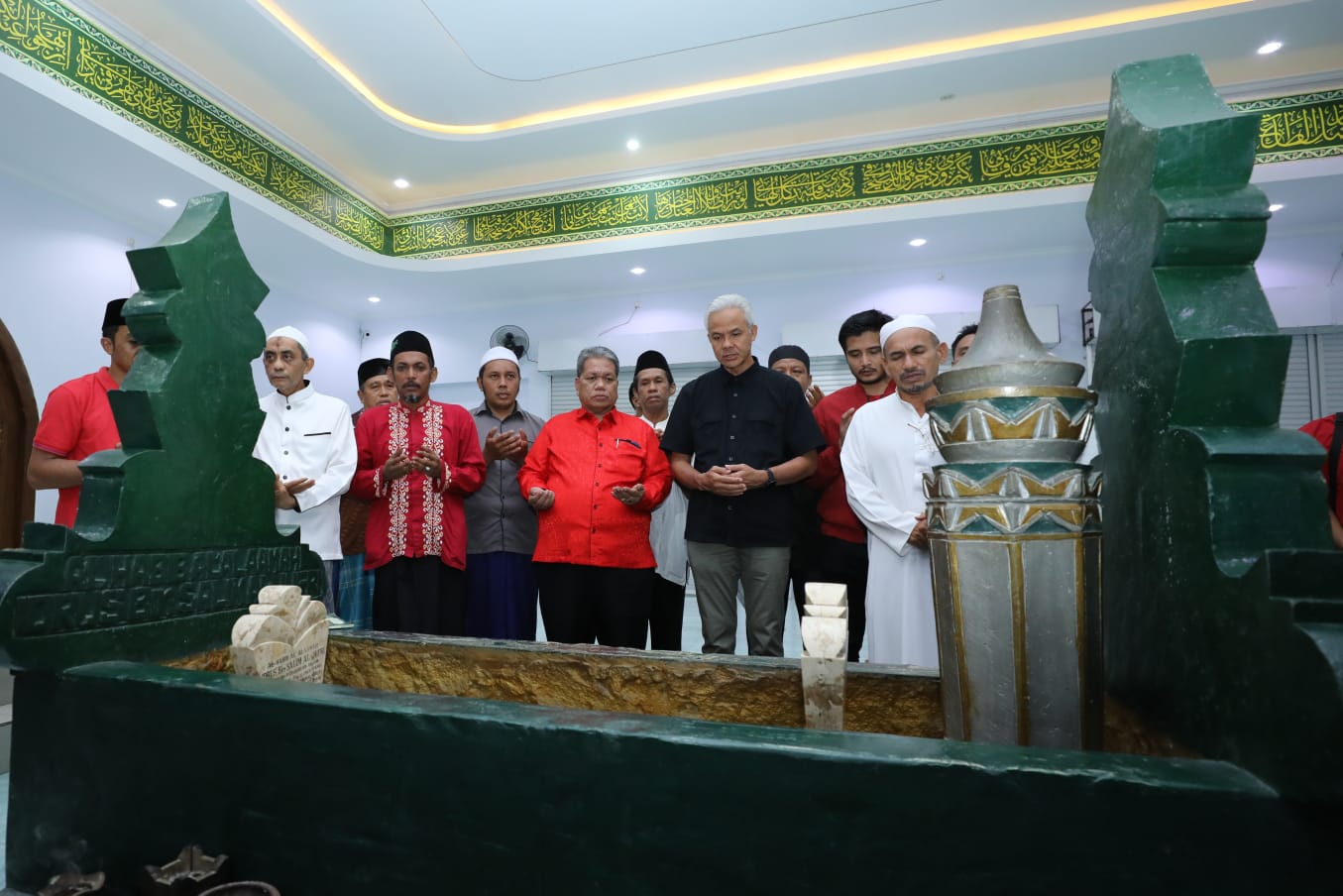Calon presiden Ganjar Pranowo berziarah ke makam Al-Habib Idrus bin Salim Al-Jufri atau lebih dikenal dengan Sayyid Idrus bin Salim Al-Jufri atau Guru Tua di di komplek Masjid Alkhairaat, Jalan Sis Aljufri, Kota Palu, Sulawesi Tengah, Senin (4/12/2023) malam.