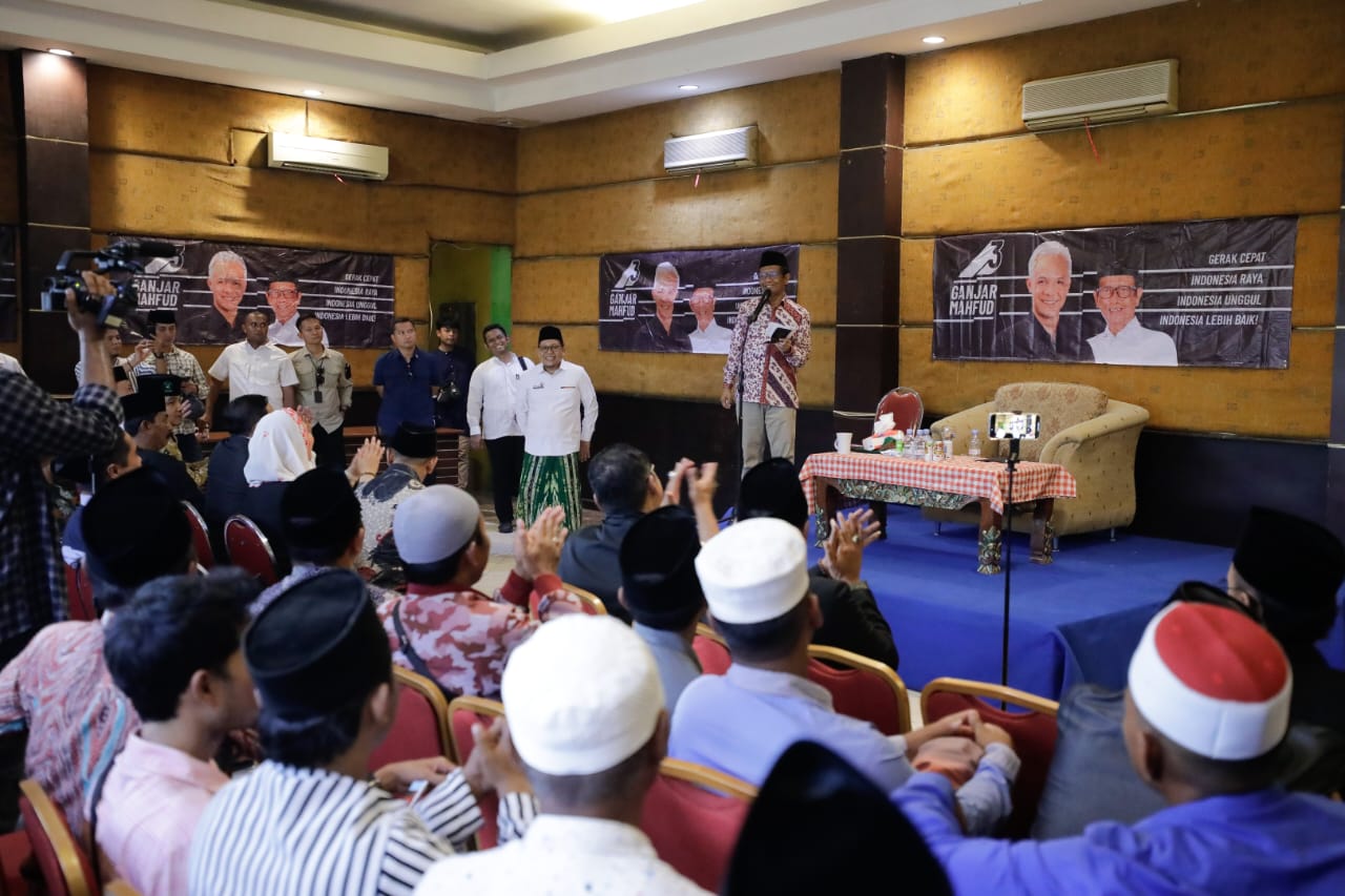 Mahfud turut mendengarkan pertanyaan maupun harapan dari kyai-kyai yang hadir. Ia menegaskan, baik kyai-kyai kampung maupun Ganjar-Mahfud miliki kesamaan tekad membuat Indonesia jadi lebih baik.