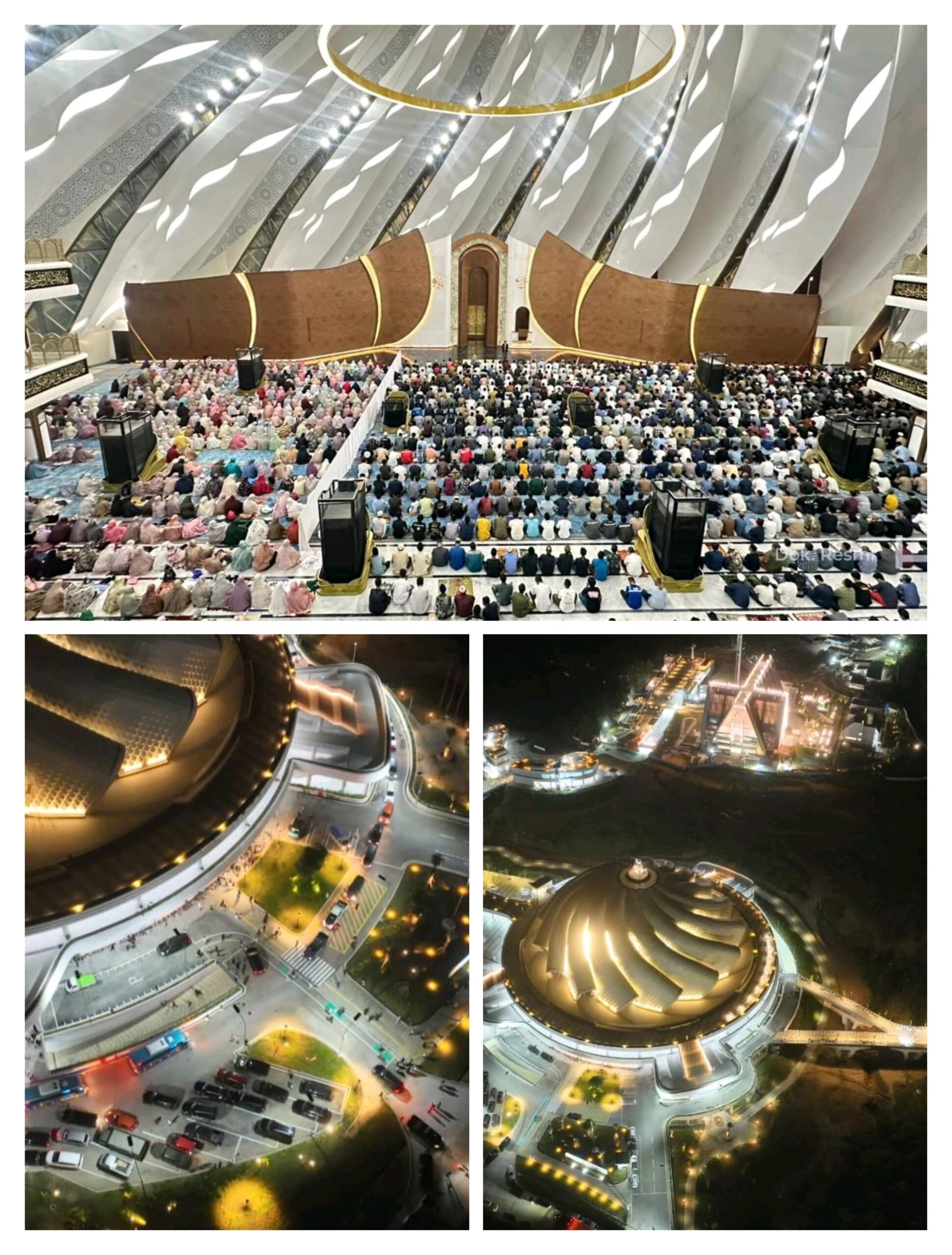 Tiga sudut foto Masjid IKN menggambarkan kemewahan dan keindahan araitekturbya. Masjid yang mampu menampung 60.000 jamaah ini koni sudah selesai dibangun dan telah melaksanakan sholat tarwih. (Foto : Corcom HK)