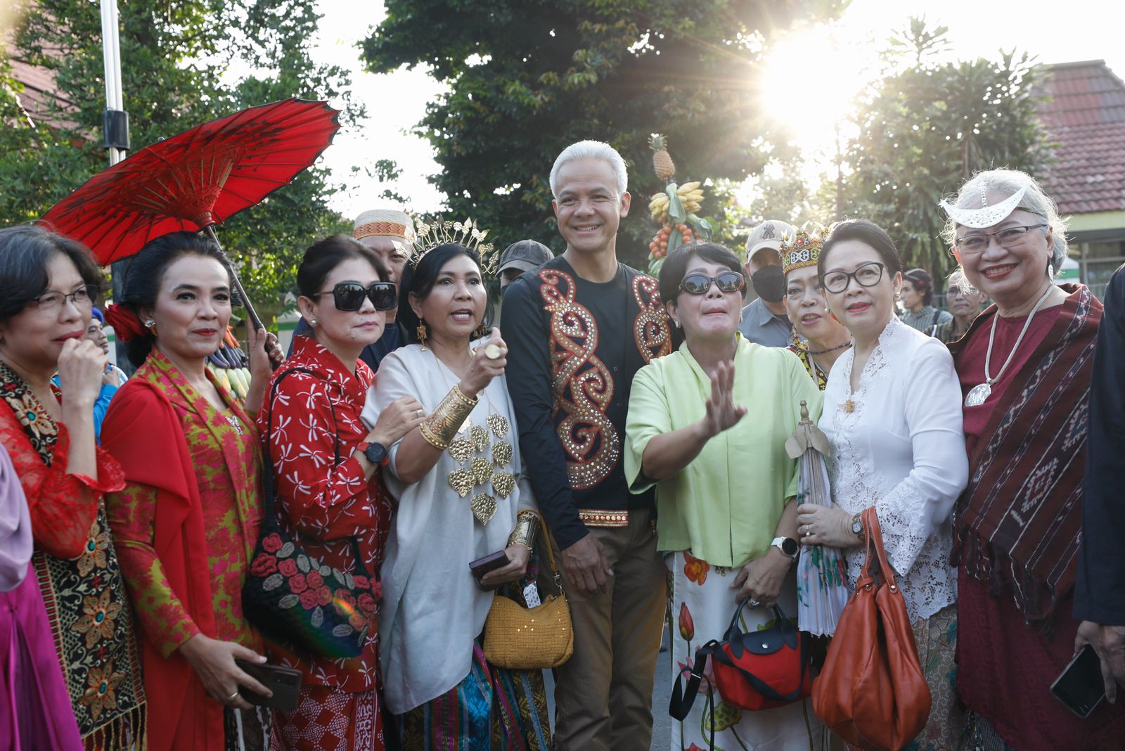 “Temanya jadul dan baju adat, Nusantara. Baju adat Nusantara. Ini ada dari Madura, ini Cirebon, ini dari NTT, ini dari Tapanuli,” jelas Ganjar.