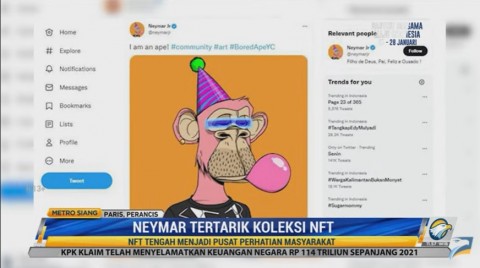 Bintang klub sepak bola Paris Saint Germain baru saja membeli 2 karya NFT buatan Bored Ape Yacht Club (BAYC) melalui pasar terbesar NFT di OpenSea. Metro TV