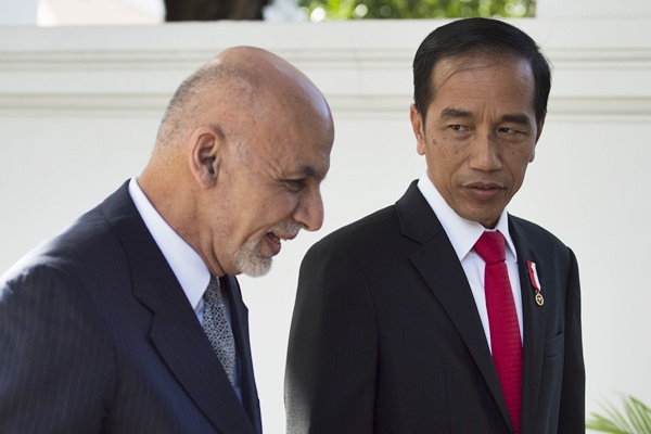 Presiden Jokowi berbincang dengan Presiden Afganistan Muhammad Ashraf Gani di Istana Merdeka, Rabu 5/4-1917 (Ist)