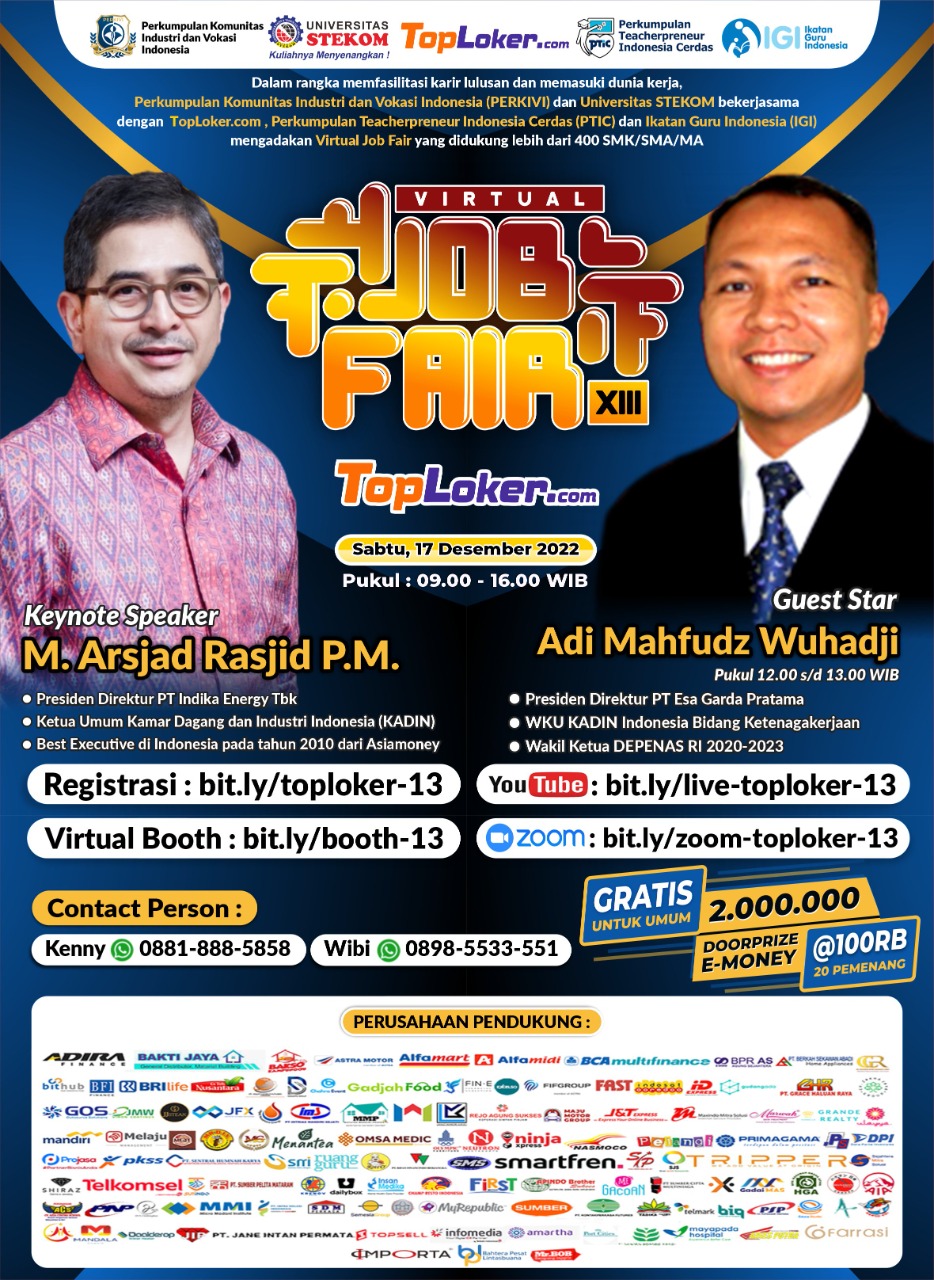 Virtual Job Fair XIII juga menampilkan Ketum Kadin Indonesia Arsyad Rasyid sebagai keynote speaker dan Adi Mahfudz sebagai gues star. Adi Mahfudz adalah Direktur Utama PT Esa Garda Pratama dan Wakil Ketua DEPENAS RI 2020-2023.