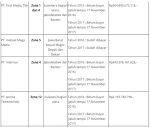 Dikutip dari Liputan6.com Plt Humas Kemkominfo Ferdinandus Setu mengatakan. “Hingga batas akhir, Sabtu 17 November 2018 pukul 23.59, ketiga operator tidak melakukan pelunasan utang BHP frekuensi,” katanya Minggu (18/11/2018).