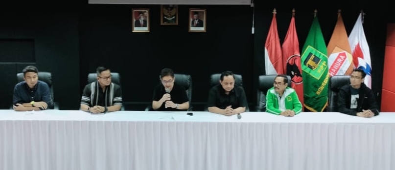 ARSJAD Rasjid didampingi para Wakil Ketua TPN Ganjar-Mahfud mengumumkan nama mantan Ka BAIS Letjen TNI (Purn) Joni Supriyanto yang bergabung menjadi Wakil Ketua TPN Ganjar-Mahfud.(foto : Media Centre TPN GM)