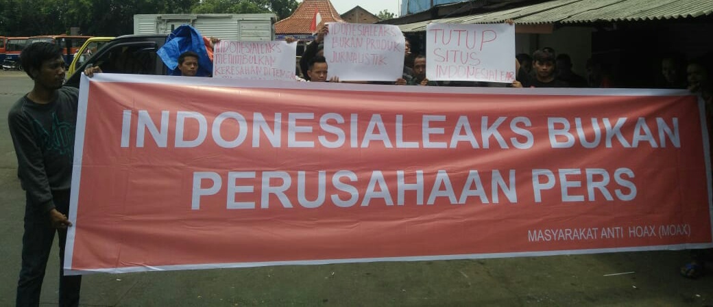 Dalam unjuk rasa yang diikuti puluhan massa Masyarakat Anti Hoax (Moax) menyebutkan bahwa munculnya situs Indonesia Leaks, yang menyebut diri sebuah portal investigasi telah menimbulkan keresahan di tengah masyarakat Indonesia.