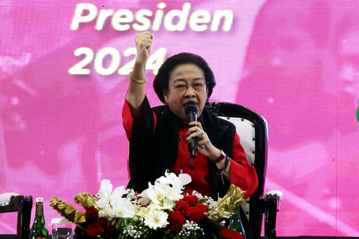 Penegasan ini disampaikan Megawati saat menyampaikan orasi didepan 8000 relawan se Jawa dalam Rapat Koordinasi Nasional (Rakornas) Relawan Ganjar-Mahfud di JI-Expo Kemayoran, Jakarta Pusat, Senin (27/11/2023).