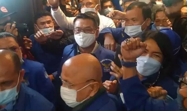 Kehadiran Moeldoko disambut riuh pendukung KLB. Mereka meneriakkan yel-yel dukungan pada Moeldoko. Beberapa bersalaman dengan kepalan tangan hingga meminta berfoto.