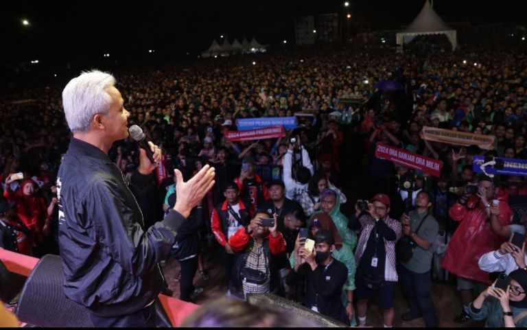 Di hadapan puluhan ribu masyarakat yang hadir, Ganjar menyampaikan tentang pesan perdamaian bangsa Indonesia yang harus dijaga menjelang Pemilihan Presiden (Pilpres) 2024.