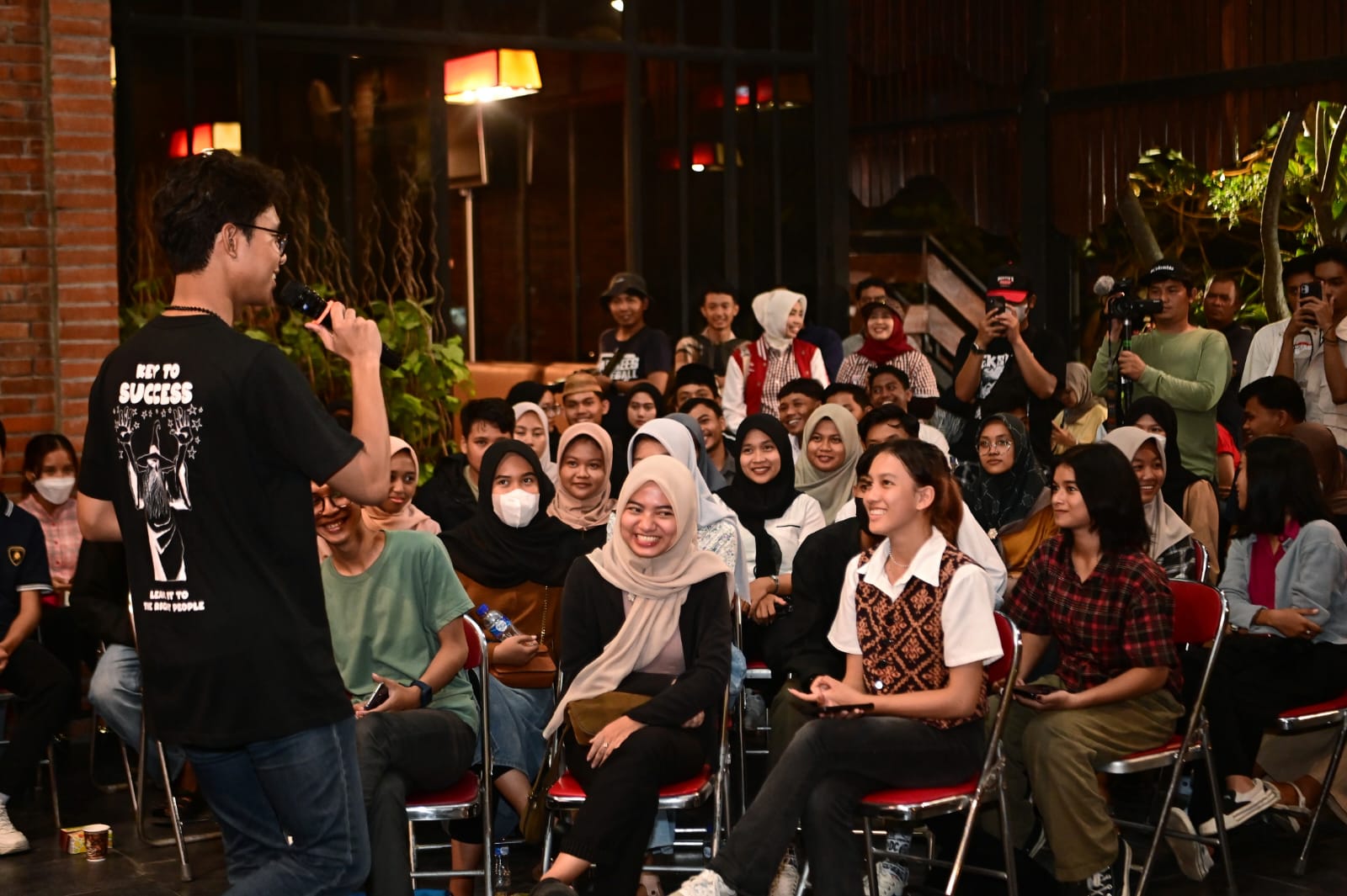 “Tadi kita diskusi dan dapat banget obrolannya, ada temen-temen yang mengutarakan kesulitannya sampai dia mempertimbangkan untuk kuliah atau langsung kerja dan itu bisa menjadi salah satu titik konkret memang ternyata dibutuhkan terkait program satu keluarga tidak mampu satu sarjana,” kata Alam.