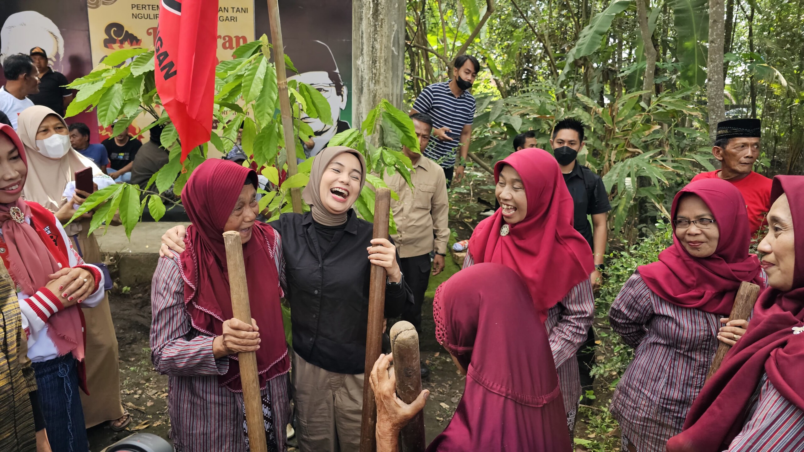 Keceriaan pun terpancar saat Atikoh dan para lansia itu menabung lesung. Para ibu itu tak menyangka jika istri Ganjar Pranowo ini ikut turut menabuh lesung.
