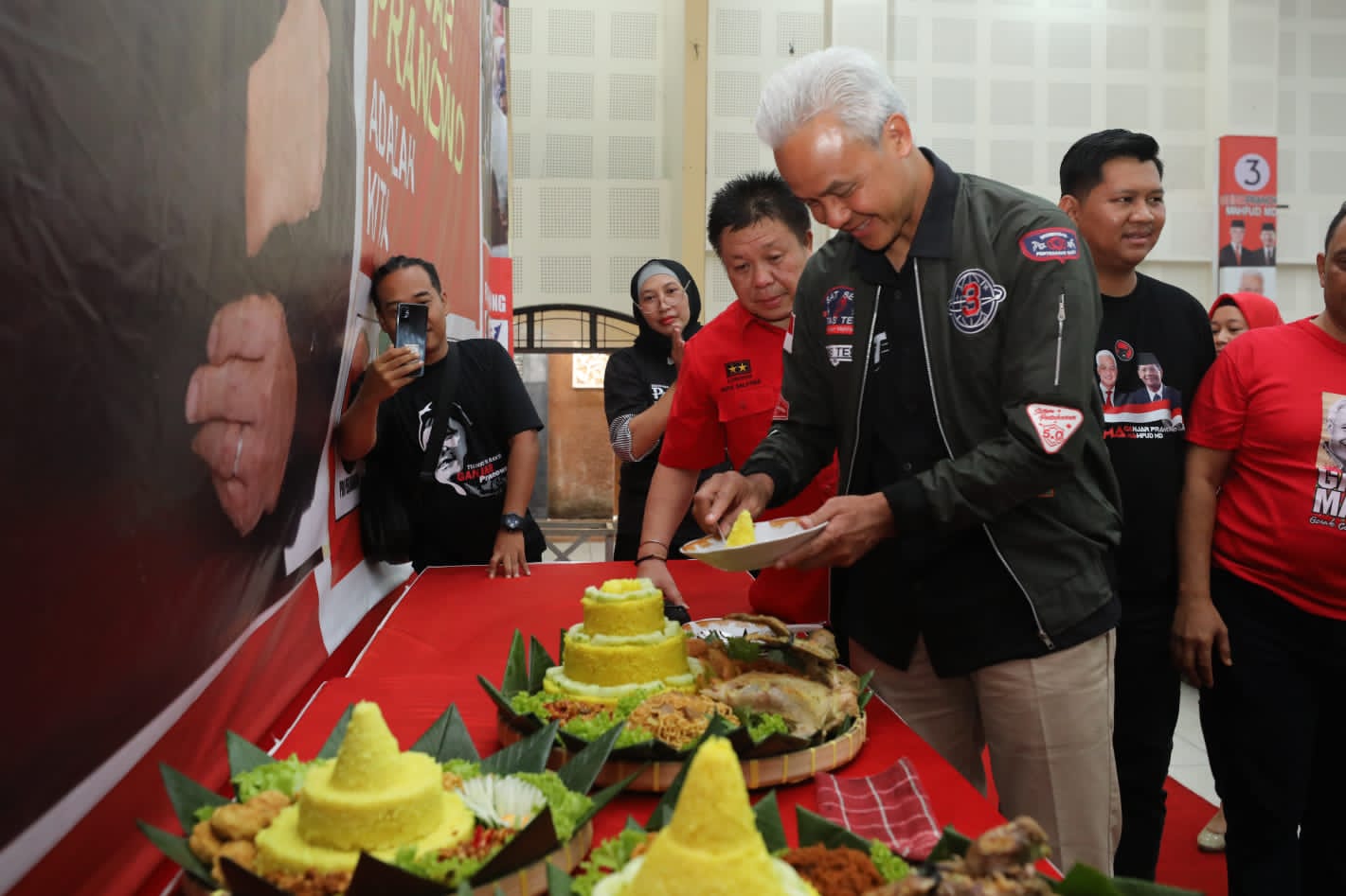 Ganjar merayakannya dengan memotong 3 tumpeng sebagai bentuk ucapan selamat untuk Megawati Soekarnoputri sekaligus memanjatkan doa bersama-sama.