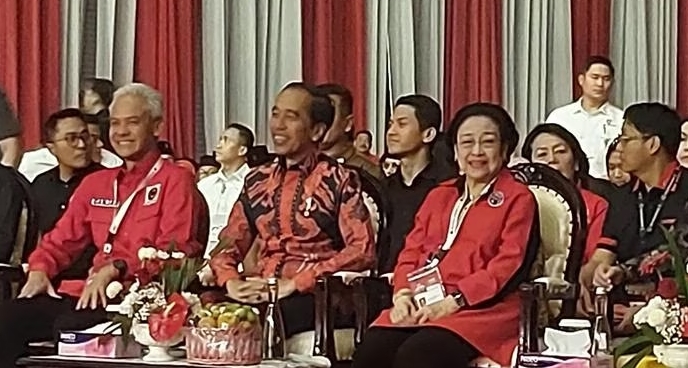 Ganjar Pranowo,Presiden Jokowi, & Megawati Soekarnoputri di Rakernas PDIP.