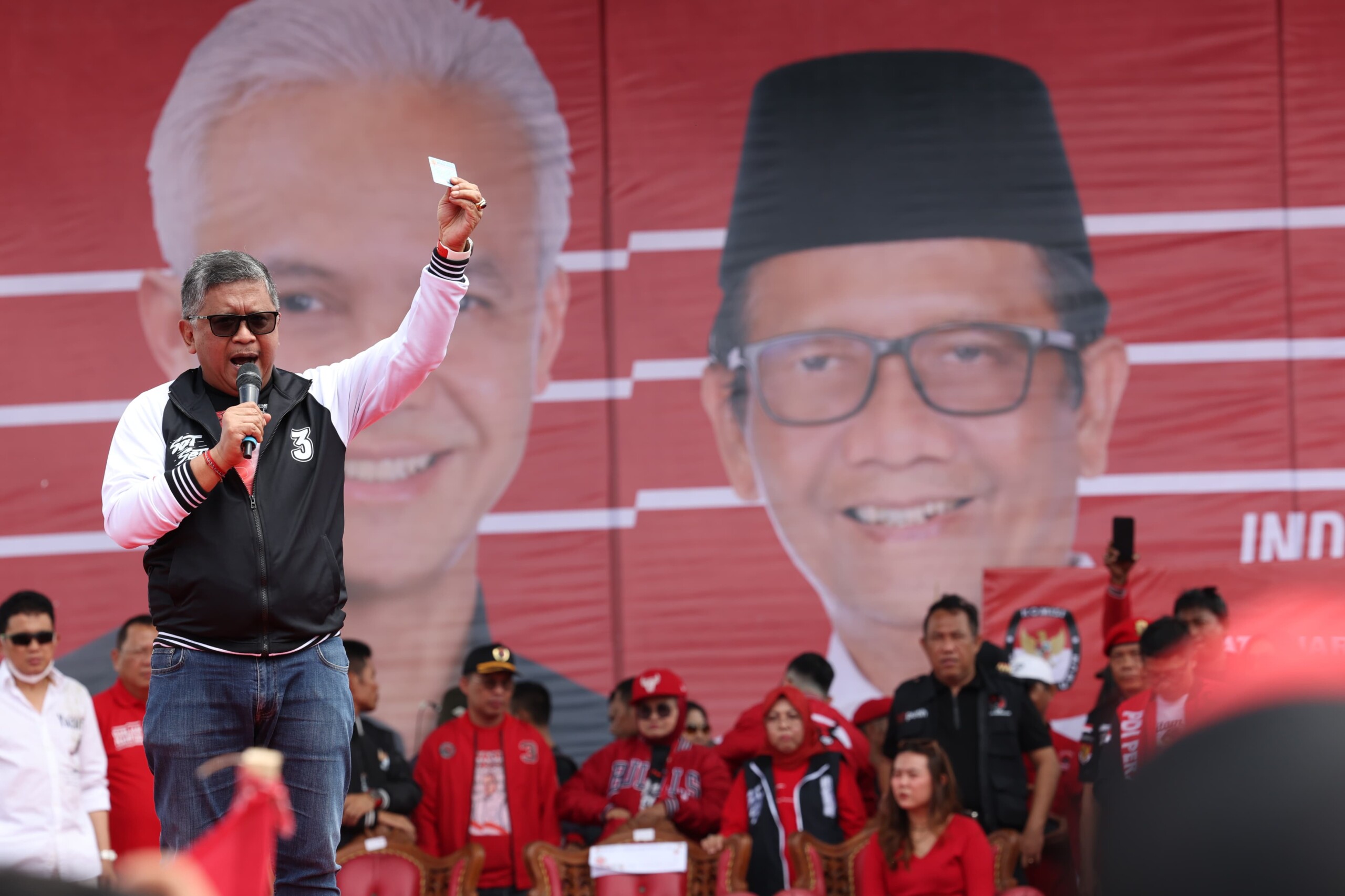 Hasto Kristiyanto meminta para kader partai politik pendukung, sukarelawan, simpatisan, dan pendukung untuk memenangkan paslon nomor urut tiga di Pilpres 2024.