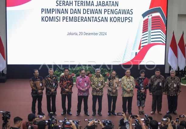 Komisi Pemberantasan Korupsi (KPK) melaksanakan serah terima jabatan kepada Pimpinan dan Dewan Pengawas (Dewan Pengawas) KPK terpilih periode 2024-2029 di Gedung Merah Putih KPK, Jakarta, Jumat (20/12/2024 ).