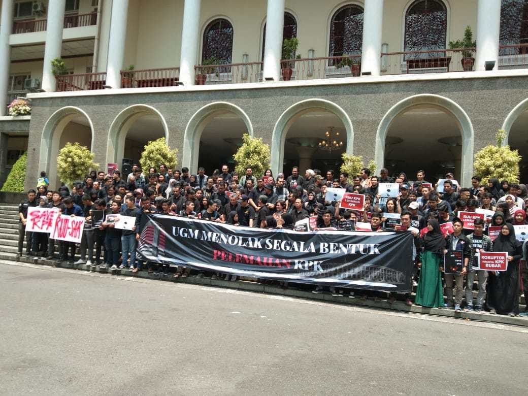 Yogyakarta, Harian Indonesia ID – Ratusan mahasiswa, dosen dan karyawan Universitas Gadjah Mada (UGM), Minggu (15/9/2019) menggelar aksi menolak berbagai upaya pelemahan Komisi Pemberantasan Korupsi (KPK).