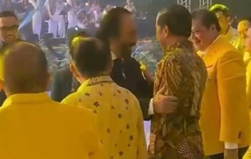 Sebelumnya, sebuah video yang yang menangkap momen Presiden Jokowi dan Ketua Umum Partai Nasdem Surya Paloh di acara puncak peringatan HUT ke-58 Partai Golkar menjadi perbincangan. Dalam video tersebut tampak Surya Paloh merangkulkan tangan kirinya ke punggung Jokowi.