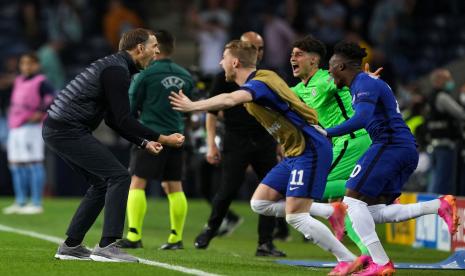 Pelatih Chelsea Thomas Tuchel merayakan keberhasilan timnya menjadi juara Liga Champions (Reuters)