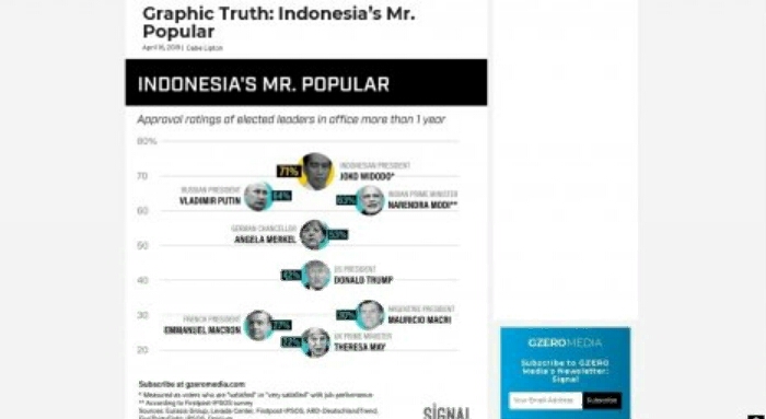 Grafik tersebut dimuat dalam artikel GZERO Media berjudul “Graphic Truth: Indonesia’s Mr Popular”, Selasa (16/4/2019).