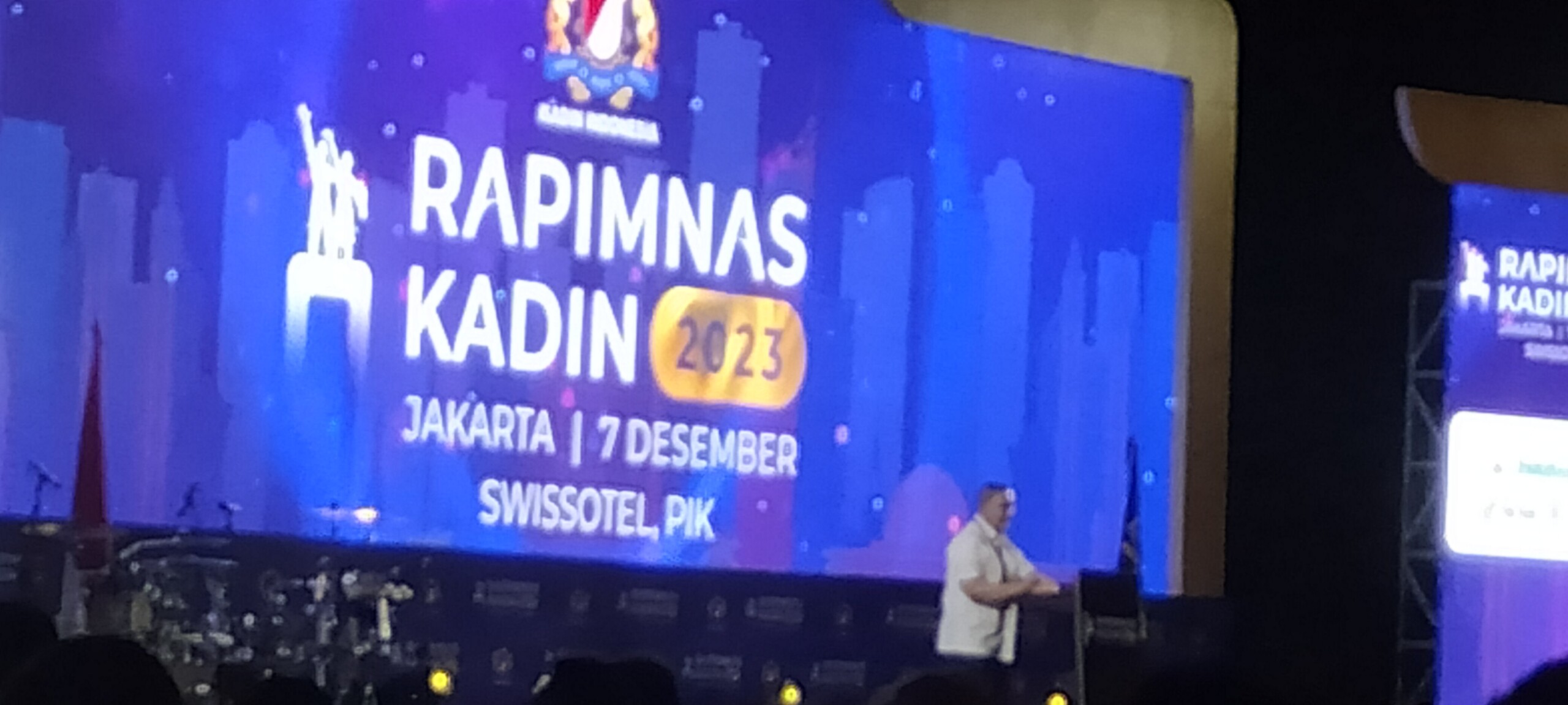 Rapimnas Kadin Indonesia dihadiri oleh Menko Perekonomian Airlangga Hartarto, Menteri Tenaga Kerja Ida Fauziyah, dan Kepala Badan Pangan Nasional Arief Prasetyo Adi.