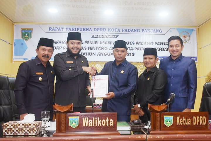Walikota Padang Panjang H. Fadly Amran, BBA, saat Penyampaian Nota Penjelasan Walikota terhadap Rancangan Peraturan Daerah (RANPERDA) tentang Anggaran Pendapatan dan Belanja Daerah tahun 2020 di depan Rapat Paripurna DPRD kota Padang Panjang, Senin (4/11) menjelaskan, untuk memgatasi penurunan jumlah APBD tersebut pihaknya akan melakukan efesiensi, efektifitas dan skala prioritas dalam pelaksanaan program kerja.