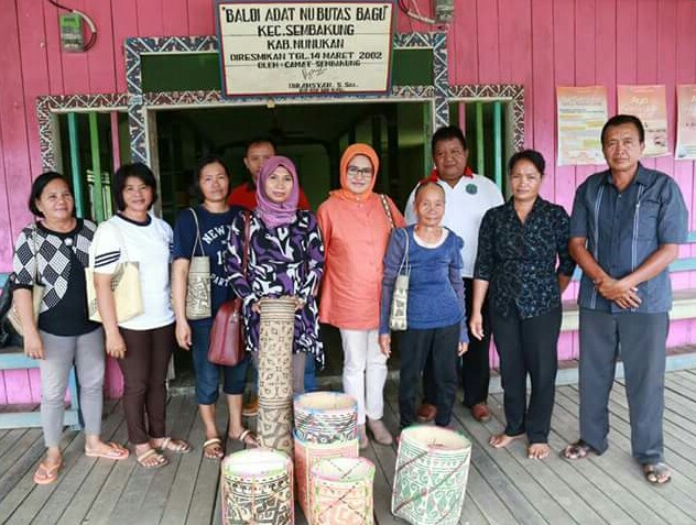 Berkumpul dengan para pengrajin rotan, istri Wakil Bupati Nunukan H. Faridil Murad ini tampak begitu gembira. Ia terlihat begitu bersemangat mengamati berbagai kerajinan tangan yang dihasilkan oleh para pengrajin, mulai dari tas, tikar, dan keranjang punggung. Kerajinan tangan dari bahan rotan di Desa Butas Bagu dan Lubok selama ini memang cukup diminati oleh masyarakat di Kecamatan Sembakung dan sekitarnya karena selain pengerjaannya lebih halus, motif dan sulamanya memiliki makna dan cerita yang menarik. Para pengrajin itu merupakan binaan Pusat Kegiatan Belajar Mengajar (PKBM) Kecamatan Sembakung. (Agus Tomadio/Hms)