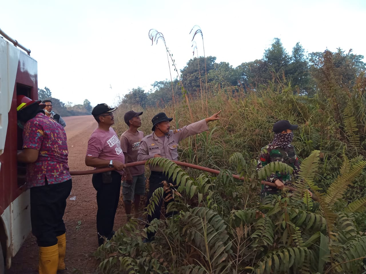 Tim gabungan diturunkan dari Kecamatan, Polsek, Koramil, pihak perusahaan setempat dan dibantu masyarakat sekitar berjibaku memadamkan api yang telah melalap puluhan hektar lahan semak belukar tersebut.